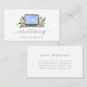 Beautiful design for teachers and educators specializing in virtual tutoring, remote learning, or online instruction features a watercolor laptop computer illustration flanked by bouquets of blush pink peony flowers. Customize the front with two lines of text in handwritten script and classic serif lettering, and add your initials or monogram to the light blue laptop screen. Add your contact information to the reverse side.