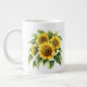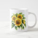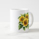 This jumbo size mug is shown in white with a pretty floral sunflowers watercolor print.