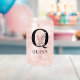 Floral Letter Q Monogram and Personalized Name Can Glass