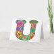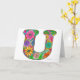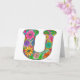Floral Letter U Greeting Card - Blank Inside