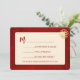 Gold line art flowers and a gold double happiness symbol on a shimmering red background. RSVP Chinese Wedding Card. At the backside is a scannable qr code for your wedding website.
