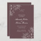 Celebrate your special day with this elegant floral wedding invitation, featuring hand-drawn white botanical illustrations on a mauve background. The refined calligraphy names and graceful serif text create a timeless aesthetic perfect for romantic garden weddings, formal soirées, or minimalist celebrations.