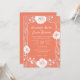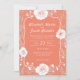 Simple, artistic floral design with white flowers on a salmon coloured background.