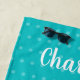 Cute llama beach towel, perfect for some summer fun! Design features a sweet white llama illustration, flower and teal polka dot background. Easily personalize this custom kids beach towel with a name.