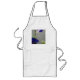 Long apron with image of vibrant pink-purple Morning Glory wildflowers creeping along a path with other wild shrubbery.