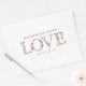 This sweet Made with Love sticker features decorative floral letters that spell out LOVE. Each letter has a green vine with bright red flowers. Some of the letters contain an envelope and or a red crown. Colours include green, red and off white. You can personalize with your name. This sticker is the perfect touch to send off your handmade items or baked goods.