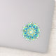 A Beautiful Sticker featuring a Colourful Floral Mandala with shining Blue, Yellow and Turquoise colours representing the Sky, The Sun, and our lovely Earth respectively. A Tribute to the wonders of Creation that warm our hearts and give us hope to create a better tomorrow. Hand-drawn and painted by SunFreeStar.