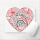 Floral Mandala Dog Paw Print Red Heart Mouse Pad