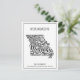 Send your family and friends this modern boho Missouri state new address moving announcement postcard. This elegant design features a black and white illustration of the state of Missouri accented by a floral mandala. The top of the card reads "We've Moved To:" And below the illustration is your name and new address to personalize. The back of the postcard has a message and signature for you to customize. Designed by Susan Coffey.