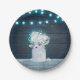 Floral Mason Jar & Blue Lights Rustic Wedding Paper Plate
