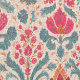 This wallpaper features a floral medallion motif in teal and coral on warm ivory. The repeating ornamental pattern reads vintage boho with subtle damask character, adding movement and an inviting, collected feel. Beautiful for an accent wall or full room in bedrooms, living rooms, entryways, or dining nooks. Pair with natural wood and textured linens for a softly layered look.