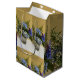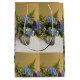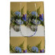 Beautiful blue flowers arranged as a full bouquet with added greenery to compliment, making this gift bag a delight for any occasion.