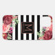 Floral Monogram Black White Striped Rose Gold Case-Mate iPhone Case