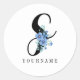 Floral Monogram S Blue Flower Burst Classic Round Sticker