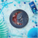 Navy blue and burgundy red celestial wedding paper plates with the romantic starry night lights and the floral moon monogram