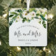 Did you get married this year? Add a memory to your tree with this elegant floral keepsake ornament featuring a top border comprised of hand painted white roses and greenery and the message, "Our First Christmas as Mr. and Mrs." in a lovely handwritten script font. Use the template to easily add your names and year of your wedding to the front and your favourite photo to the back. This keepsake ornament also makes a gift to a newlywed couple for their first Christmas.