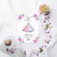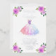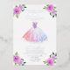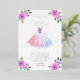 Elegant multicolor gown, floral 15th birthday party invitations.