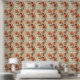 Floral Musical Notes Pattern Red Peel And Stick Wallpaper