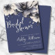 Cute and simple modern black, white and navy blue coloured flower bridal shower design. A classic but modern look with black, grey and cream coloured flowers with off-white fonts. Edit all of the text to your own information. Whether you are looking for a classic floral style, a boho vibe, or a modern upscale metropolitan style, this can work for you. Typography Elegant Floral Navy Blue Bridal Shower Invitation