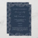 Elegant floral minimalist wildflower boho design in Navy Blue, front and back invitation for winter, fall wedding. It offers a romantic look with handwritten script typography.