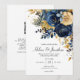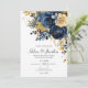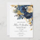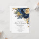 Floral Navy Blue Gold Garden Elegant Wedding Invitation
