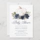 Floral Navy Blue White Pumpkin Gold Leaves Baby Shower. Dusty Blue Flowers Greenery Baby Shower Invitation Card