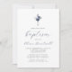 Floral Navy Dusty Blue Silver Cross Boys Baptism Invitation
