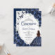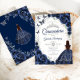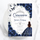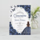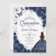 Floral Navy Silver Quinceanera Invitation