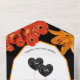 Black and orange, the colors of Halloween! This gerbera and lily design is bold and striking featuring two black heart shaped balloons bearing the bride and grooms names.