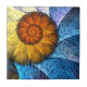 Floral Orange Yellow Blue Abstract Art Tile