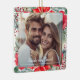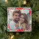 Celebrate your first holiday season as an engaged couple with this beautiful personalized Christmas ornament. The front features a spot for your favourite photo, elegantly framed by a watercolor border of festive florals, red berries, and classic evergreen sprigs. Below the photo, your names are written in a lovely script font, making it a truly unique keepsake. The reverse side holds a sweet message: "OUR FIRST CHRISTMAS engaged" with a heart and the year. This custom photo ornament is a perfect gift for a newly engaged couple or a cherished addition to your own tree, a timeless reminder of your special beginning.