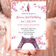 Floral Paris Eiffel Tower 2nd Birthday Party Invitation