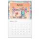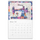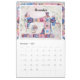 Sewing machine themed wall calendar featuring 12 months of patchwork designs in vibrant coloured floral patterns. Front cover design is personalized with your name and captioned "Our lives are like quilts – bits and pieces, joy and sorrow, stitched with love", which can be edited with your own text.