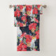 Floral Pattern Birds Flowers Foliage Red Hibiscus Bath Towel Set