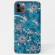 A vibrant phone case adorned with a floral pattern featuring large teal and blue flowers, with delicate pink accents.