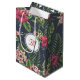 Beautiful floral pattern of Hibiscus on dark background. Sophisticated and feminine medium gift bag with monogram into white round shape. You can easily change text (font, colour, size and position) by clicking the customize button. Matching luggage, luggage tag and more...