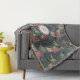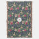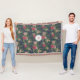 Personalized throw blanket: Classy and fresh seamless pattern composed with red hibiscus flowers and leaves on dark background. Custom Monogram included on white round shape.