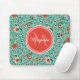 Floral Pattern in Teal and Orange and Red Monogram Mouse Pad