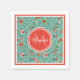 Floral Pattern in Teal and Orange and Red Monogram Napkin