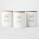 Cute botanical pastel orange, blue, sage green pattern personalized kitchen labels with script name and text template.