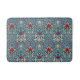 Floral pattern on green leaves blue background bath mat
