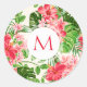 Floral Pattern Red Hibiscus Monogram Round sticker