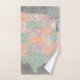 It was advertised as NAVY blue and the color sent was greenish blue. I am disappointed in this product. Quality and printing are great as are all my other orders. As you can see in picture the tea towel on right is perfect, hand towel not so much! Print was awesome and just as ordered