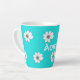 Floral pattern Teal Blue custom name Latte Mug. Add the desired name. Cute gift for a friend or relative or even for yourself. More colors and styles available. Ideal as a birthday gift or for every occasion. Name can be also changed to Mom, sister etc. Click Personalize this template ‘Details’ to personalize further.