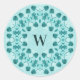 Floral Pattern, Teal Blue Initial Classic Round Sticker