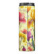 Bright travel tumbler featuring a vivid floral design with spring blooms on a soft yellow backdrop. Cheerful, colorful, and nature-inspired, perfect for lifestyle, home, and gift contexts.