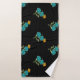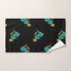 Floral Pattern Turquoise Coral Green on Black Bath Towel Set
