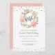 Floral Peach Silver One Wreath First Birthday Invitation