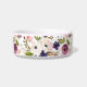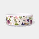 This is a heavy, durable bowl decorated with Tibbies of many colors, the perfect size for hungry/thirsty Tibs. The design is interesting and printing clear.