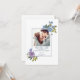 This floral save the date announcement features illustrations of flowers in periwinkle blue and dusty purple that accent your photo and wedding details.